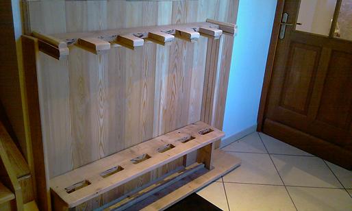 Meuble à ski, capacité 6 paires de skis et une planche de surf neige.